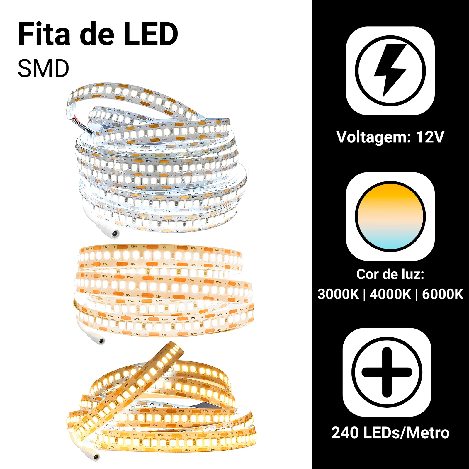 ?Quantidade de LEDs: 240 LEDs/Por Metro